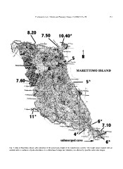 Fig. 7. Map of Marettimo Island, with indication of the present-day height of the Eutyrrhenian notches. The height values marked with an
