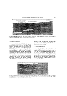 Fig. 10. Line G-69 illustrating two contractional stnictures affecting the sedimentary infill of the ES at different tirnes. The reverse fault at