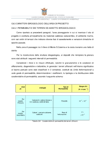 C6.5.1 PERMEABILITA’ DEI TERRENI ED ASSETTO IDROGEOLOGICO