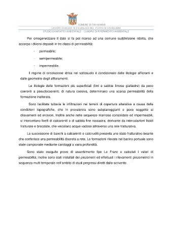 che conferisce una permeabilità discreta a rete. Le formazioni rilevate nel bacino portuale sono