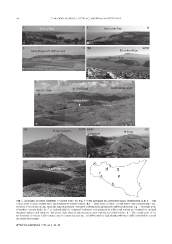 coastal areas of south western Sicily characterized by marine terraces. d, e — Hilly areas of central western Sicily with a rounded relief dis-