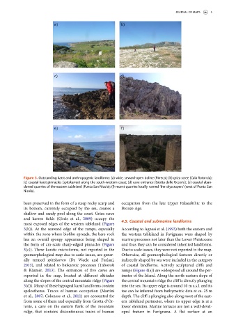 (c) coastal karst pinnacles (spitzkarren) along the south-western coast; (d) cave entrance (Grotta delle Uccerie); (e) coastal aban-