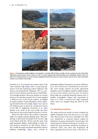 Pleistocene marine terrace (Case Canino); (c) MIS 5.5 marine deposit with Persististrombus latus individuals (Scindo Passo); (d)