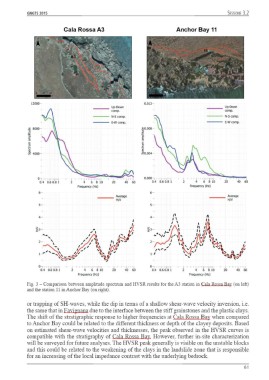 Fig. 3 - Comparison between amplitude spectrum and HVSR results for theA3 station in Cala Rossa Bay (on left)