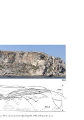 NW 50 m ? Scour ace. Note the large scours incising the older sedimentary rock.