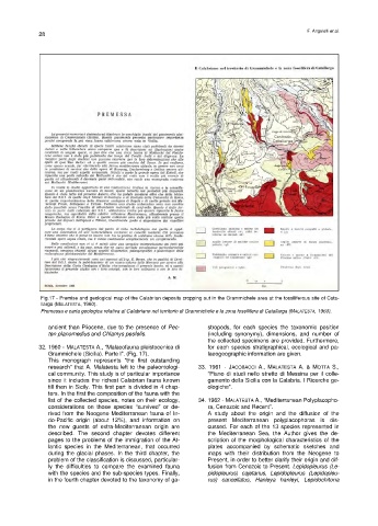 Fig.17 - Premise and geological map of the Calabrian deposits cropping out in the Grammichele area at the fossiliferous site of Cata-