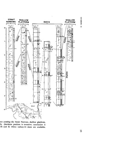 FIGURE 33.-Lithologic core logs along a transect crossing the Strait Narrows, shallow platform,