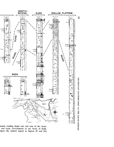 shallow platform, neritic-bathyal platform, and basin environments in the Strait of Sicily.