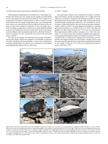 density and volume. Density was assigned to each boulder on the basis mated as the largest between the radiocarbon counting statistics and