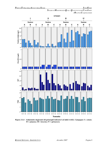 Figura 3.1.4 - Andamento stagionale dei principali indicatori ed indici trofici. Campagne: I = estate;