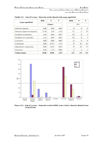 Tabella 4.2.1 - Isola di Levanzo - Sintesi dei carichi rilasciati nelle acque superficiali