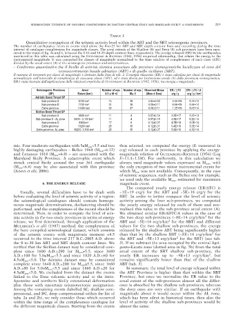 numbered in this table was calculated using the GUTENBERG & RICHTER (1942, 1956) empirical relationship, that relates the energy to the