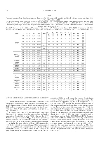 Parametric data of the focal mechanisms drawn in fig. 2 (events with M w ≥4.0 and depth <40 km occurring since 1968