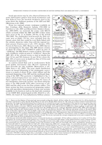 inset in fig. 2b shows a selection of focal mechanisms computed by NERI et alii (2005) for microseismic events (2.2≤Ml≤3.7) recorded in the