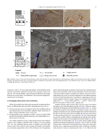 (Fig. 5C). The cavities display a clear stratabound thickness that ranges small percentage of quartz, hematite and siderite. Ostracods and Fe-