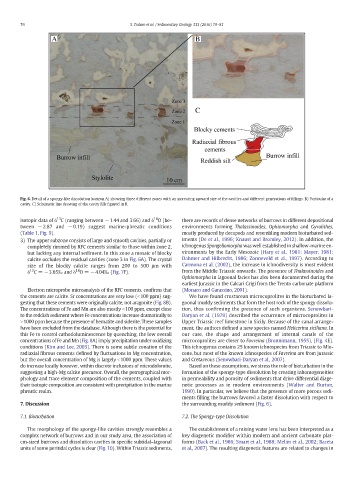 gesting that these cements were originally calcite, not aragonite (Fig. 8B). goonal muddy sediments that form the host rock of the spongy dissolu-