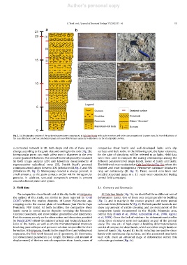 change according to the grain size and sorting in the rock (Fig. 2b). surfaces and fault rocks. In the following text, the latter elements,