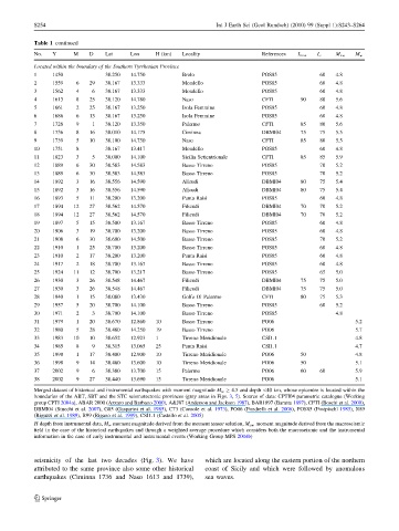 No. Y M D Lat Lon H (km) Locality References I max I o M aw M w