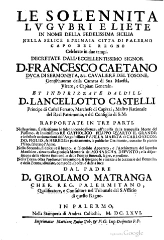 Principe di Caſtel Ferrato, Marcheſe di Capizzi , Maſtro Rationale