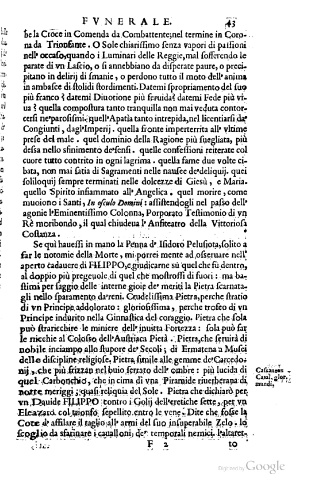 agonie l’Eminentiſſimo Colonna, Porporato Teſtimonio divị