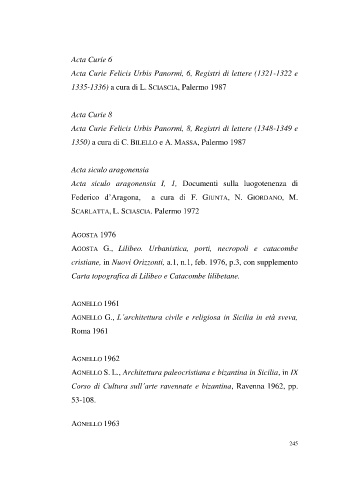 AGOSTA G., Lilibeo. Urbanistica, porti, necropoli e catacombe