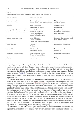 water exchange (Table 2). It should be noted that all of the threats that fishers noted are