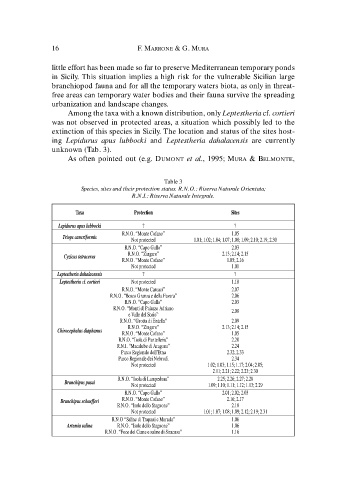Species, sites and their protection status. R.N.O.: Riserva Naturale Orientata;