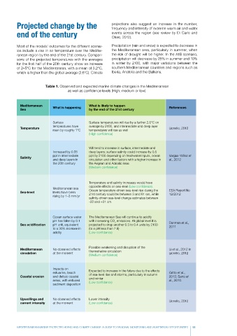 Table 1. Observed and expected marine climate changes in the Mediterranean