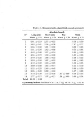Tab l e l. Measurements, classification and asymmetry