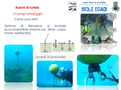 Azioni di tutela I Campi ormeggio: Come sono fatti Sistema di ritenzione al fondale ecocompatibile (manta ray, fisher, corpo morto seafriendly) Jumper di profondità