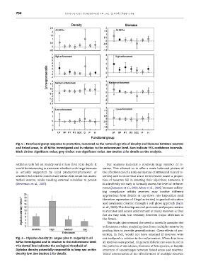 Fig. 5 – Functional group response to protection, measured as the natural log ratio of density and biomass between reserves