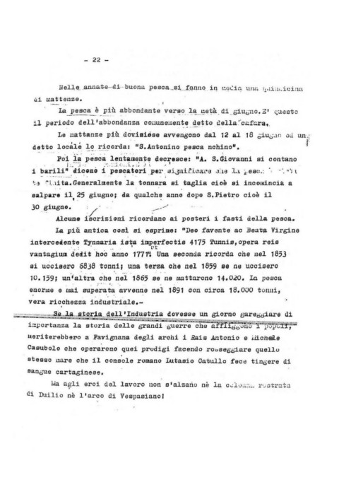 ';~ ~ i .. li ta. Generalmente la tonnara si taglia oioè si incorrincia a