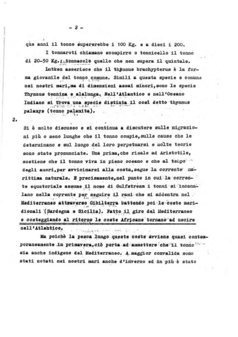 sostiene che il tonno viva in pi~no oceano e che · al tehpo·· · ''
