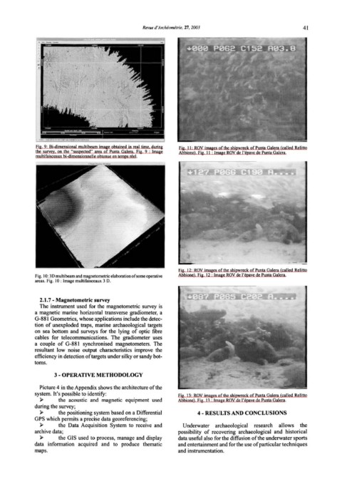 Fig. l 0: 3D multibeam an d magnetometric elaboration of some operative Abbione). Fig. 12: Image ROV de l'épave de Punta Galera.