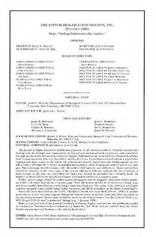 The Journal of Raptor Research is distributed quarterly to all current members. Original manuscripts