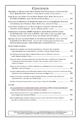 The Raptor Research Foundation, Inc. gratefully acknowledges funds and logistical support