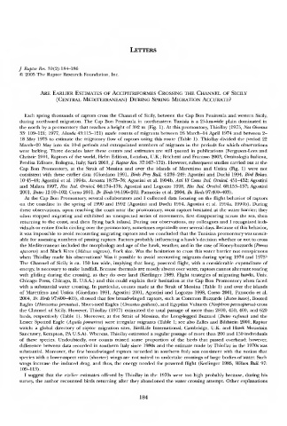 the Channel of Sicily. However, Thiollay (1977) estimated the total passage of more than 2800, 450, 400, and 620