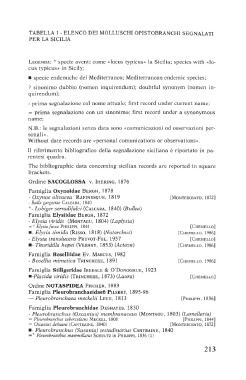 TABELLA l- ELENCO DEI MOLLUSCHI OPISTOBRANCHI SEGNALATI