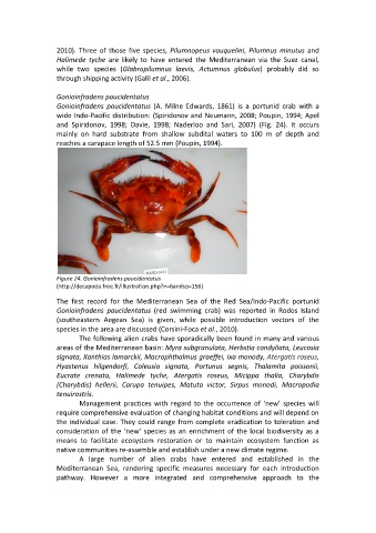 Gonioinfradens paucidentatus (red swimming crab) was reported in Rodos Island
