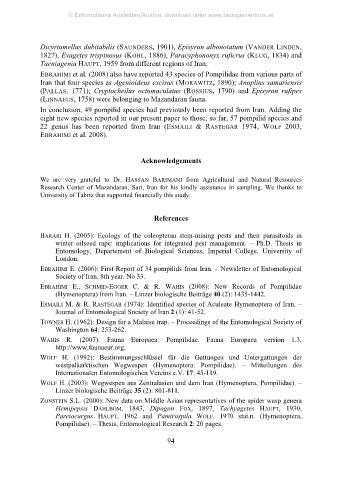 EBRAHIMI E. (2006): First Report of 34 pompilids from Iran. – Newsletter of Entomological