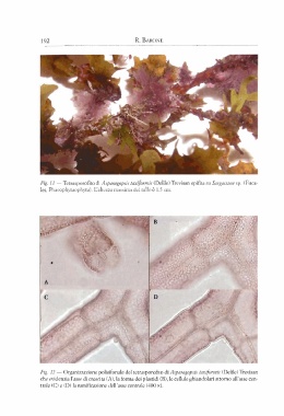 Fig. l l - Tetrasporofito di Aspurrigopsis tux~jorinis(Delile)Trevisan epifite su Snrgassrrin sp. (Fuca- les, Phaeophytiiophyta). L'altezza massima del tallo e 1.5 cm.