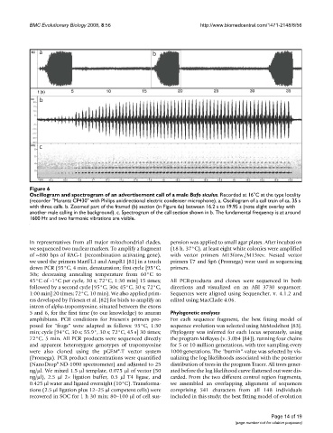 Oscillogram and spectrogram of an advertisement call of a male Bufo siculus. Recorded at 16°C at the type locality