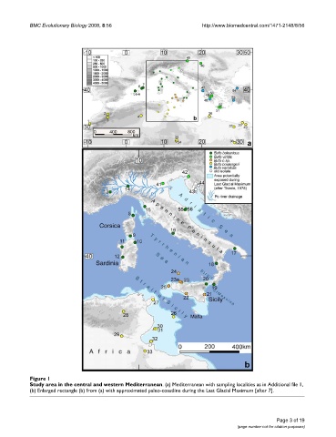 Study area in the central and western Mediterranean. (a) Mediterranean with sampling localities as in Additional file 1,