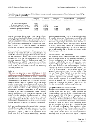 Table 1: Pairwise F ST between groups of West Mediterranean green toads based on sequences of the mitochondrial d-loop. All F ST -