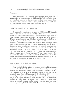 naturalization of Melia azedarach L. (Meliaceae) in Sicily, preferring urban