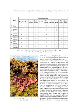 Table 3. Classes of abundance of Caulerpa cylindracea and the dominant macroalgae in 2015