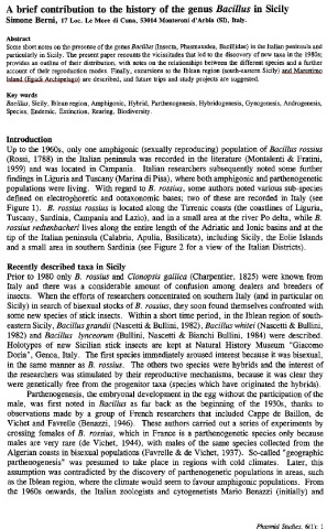 Bacillus, Sicily, lblean region, Amphigonic, Hybrid, Parthenogenesis, Hybridogenesis, Gynogenesis, Androgenesis,