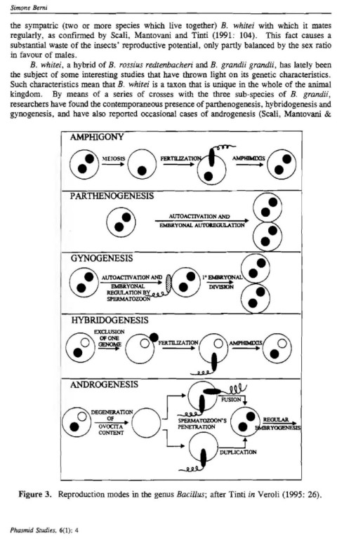 Figure 3. Reproduction modes in the genus Bacillus; after Tinti in Veroli (1995: 26).