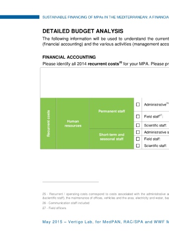 25 - Recurrent / operating costs correspond to costs associated with the administrative and operational functioning of the MPA. They include costs of: wages (administrative, field