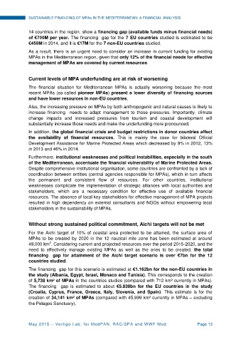 MPAs in the Mediterranean region, given that only 12% of the financial needs for effective
